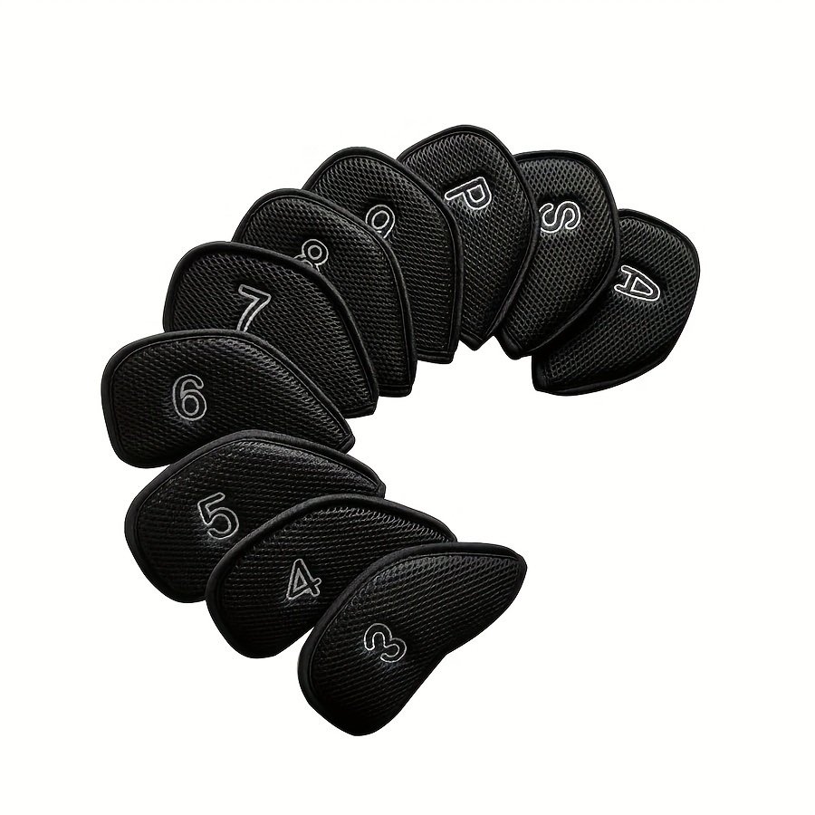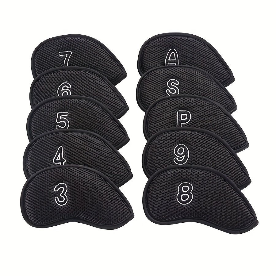 Home > 10pcs New High Quality Meshy Golf Iron Covers One Sided Numbers Right Hand Golf Iron Club Head Covers Set 4; 5; 6; 7; 8; 9; P; A; S; X Black