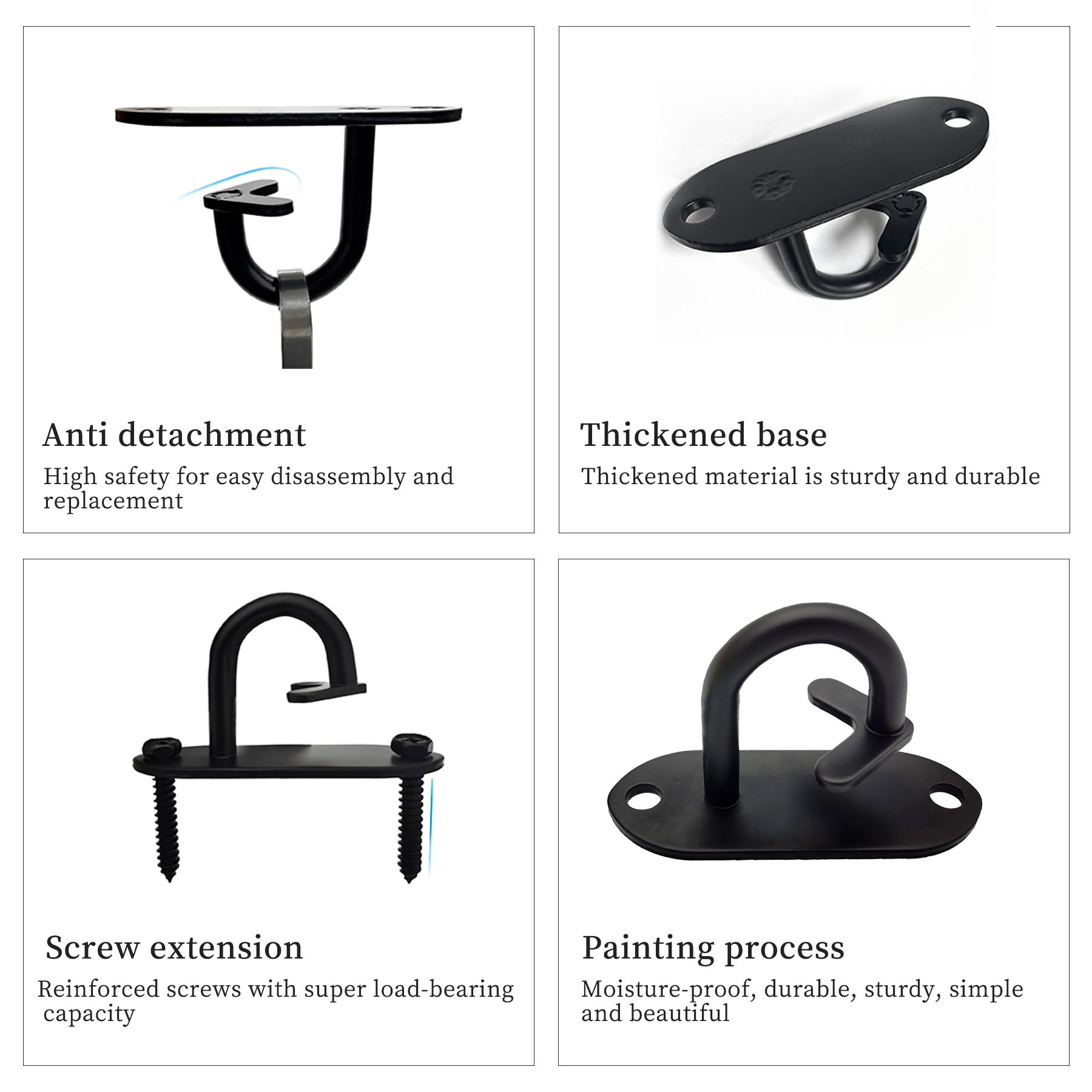 1.1. Multiple training methods: Our wall anchors are the perfect device for muscle training and fat burning. It is designed to securely fix resistance bands, weight bands and closed-loop bands.