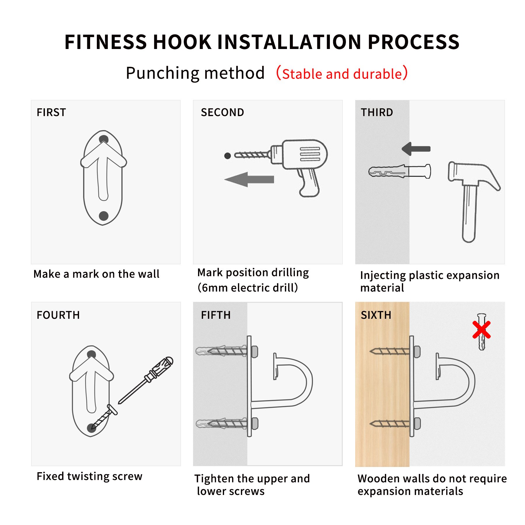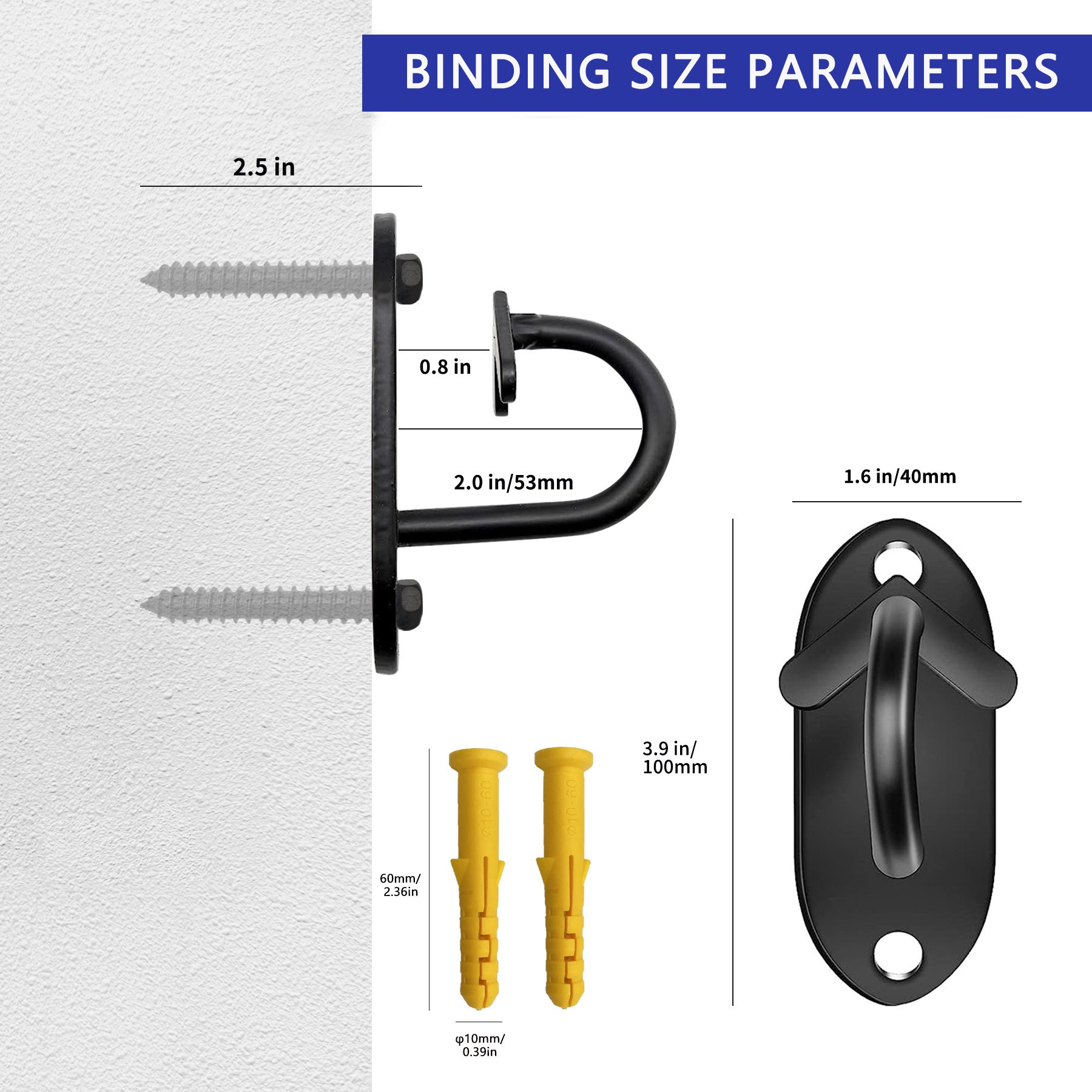 3.3. Simple and practical: This unique ear-shaped opening design of the resistance band anchor prevents the resistance band or your home fitness equipment from slipping off during use. Includes 3 anchors, 6 nails and 6 expansion bolts. Make sure you can install everything you need to any surface you choose.