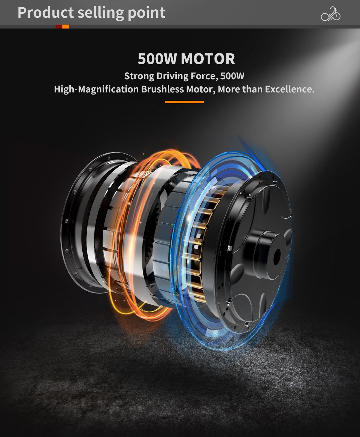 500W peak power high speed brushless motor Longer life span and faster starting speed With speeds up to 25 mph
