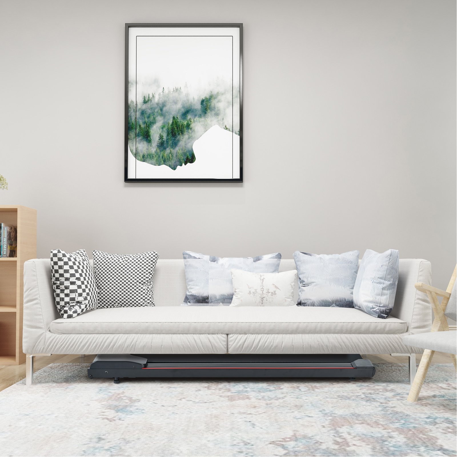 [More Convenient & Space-saving]Our walking pad treadmill adopts an installation-free solution so that everyone who receives it can experience it immediately; The smooth wheeled design and lightweight body allow you to easily store the walking pad under the sofa or anywhere, convenient and space-saving