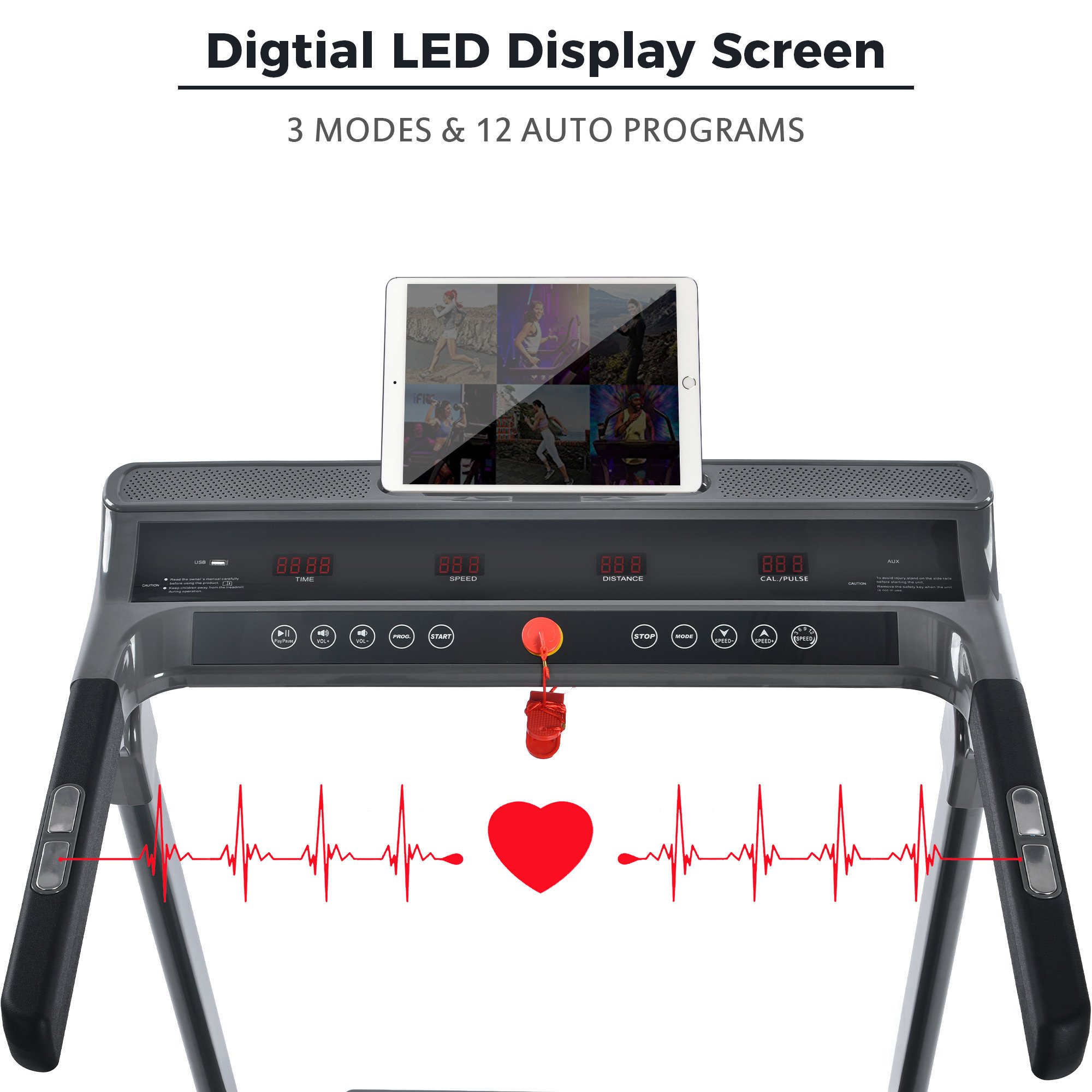 Multifunctional LED Display--Tracks your performance including time, step, speed, distance, heart rate and calories burnt, promising a superior and effective home treadmill workout.