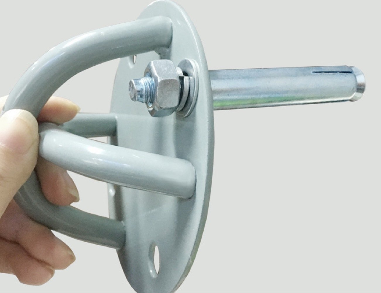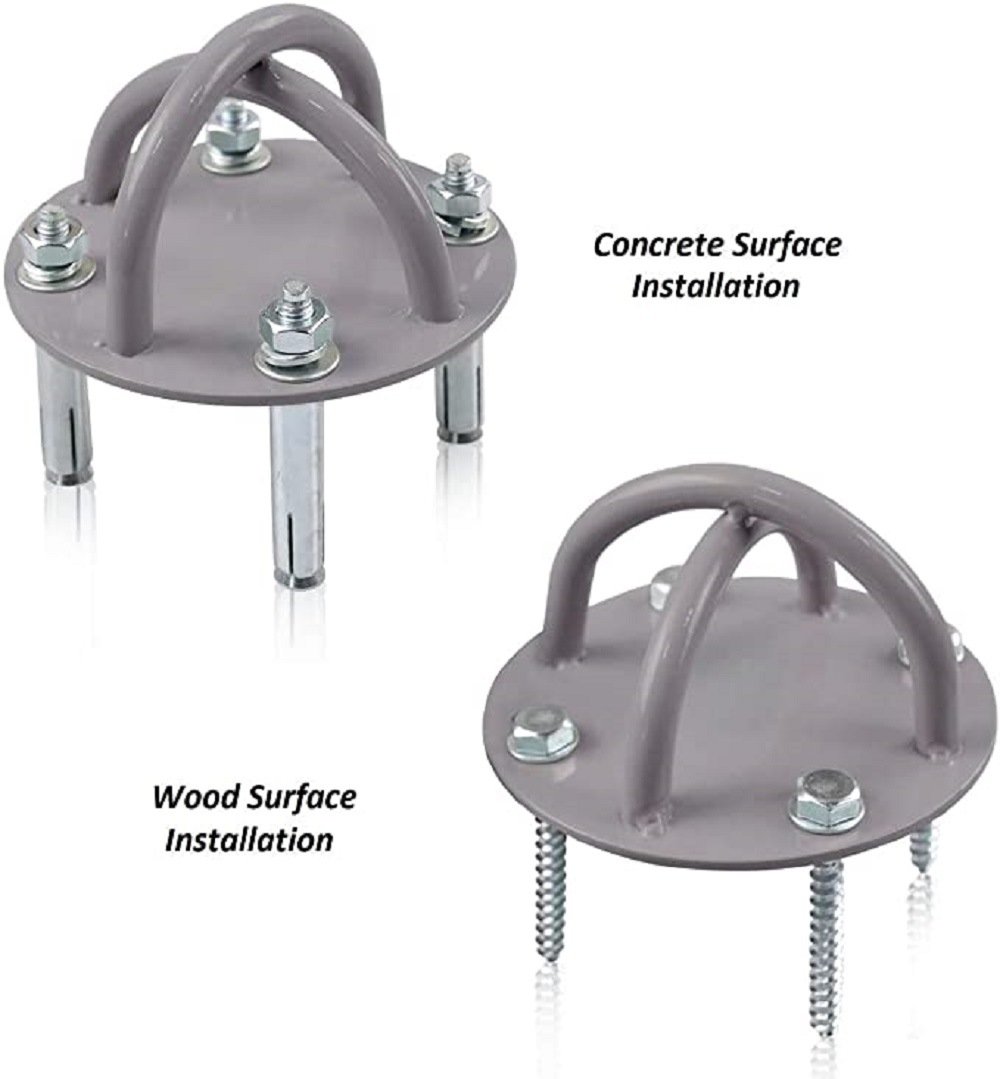 5.We’ve included all the hardware you’ll need to install our wall/ceiling anchor on any overhead beams. It can be installed in concrete or wood and provides a strong, long-lasting hold with proper installation.