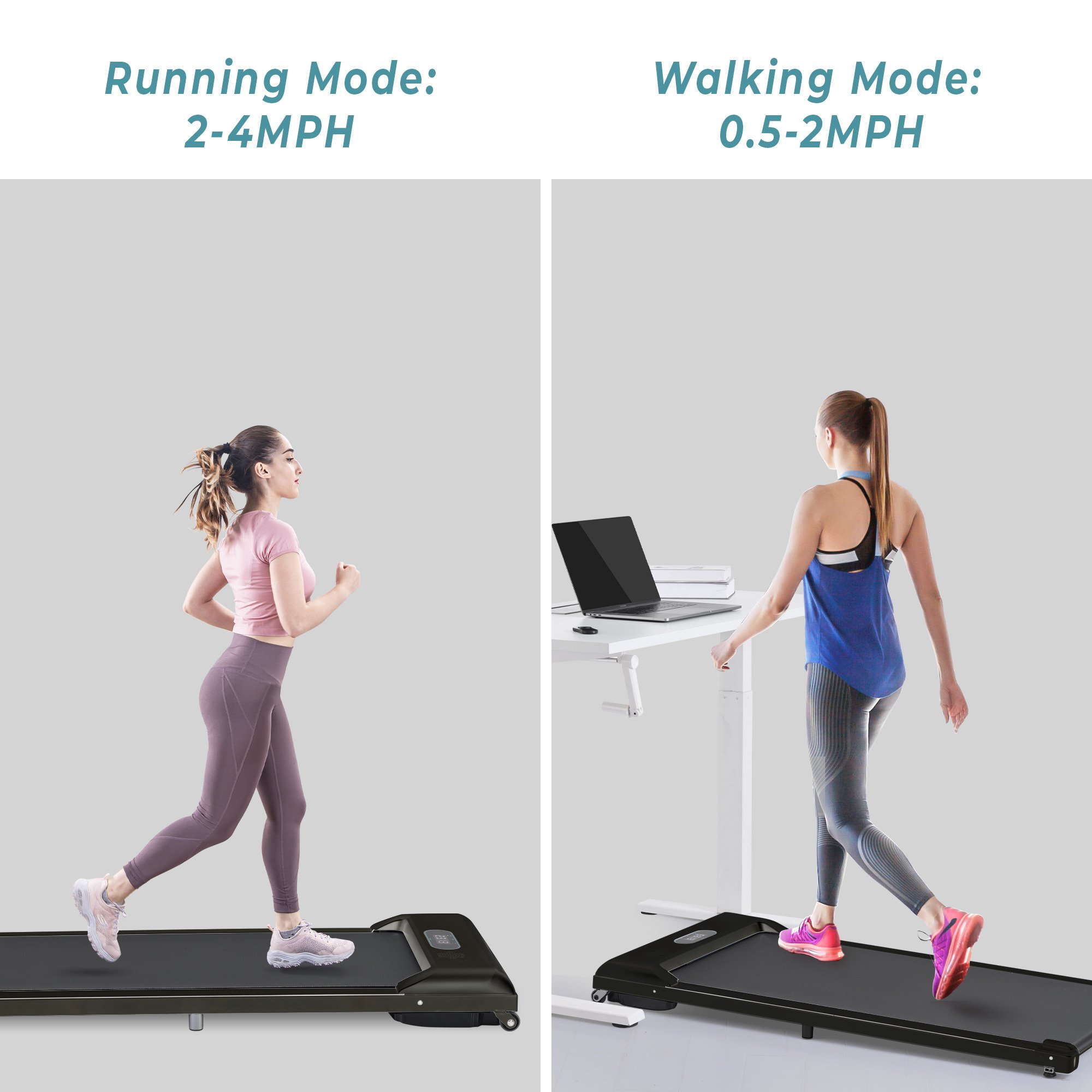 No Assemble & Space-saving: Unlike the traditional treadmills; our walking and running 2 in 1 treadmill is no assemble needed; designed to be lightweight; portable and easy to store under the bed or desk. Wheels at the bottom are for easy transportation.
