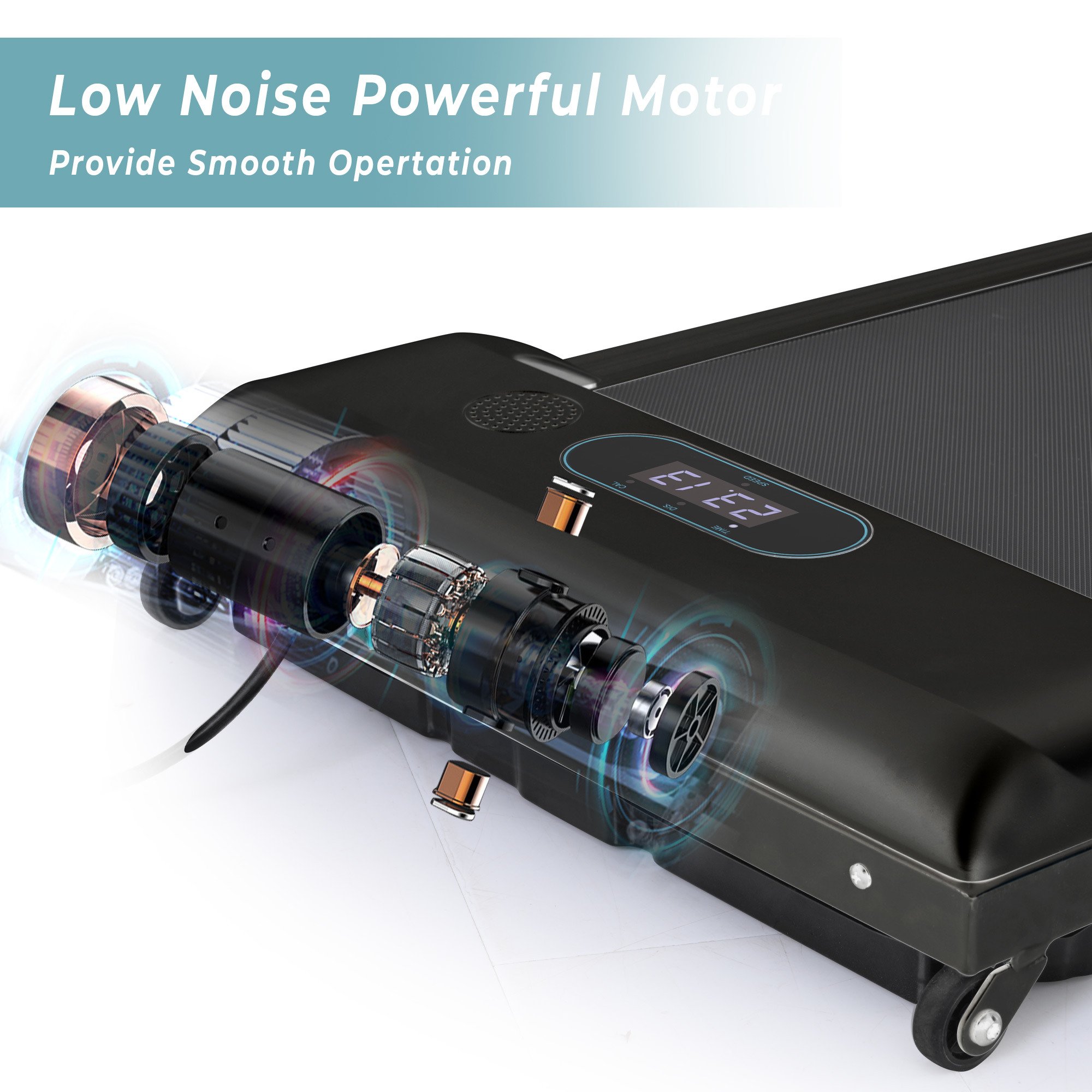 With a 2.5 HP powerful quiet Motor; the electric treadmill is perfect for running; jogging; and walking in the comfort of your home. With a durable steel frame and multi-layer shield design; the under desk treadmill's shock-absorbing and noise-reducing; making your running quieter; safer and more comfortable.
