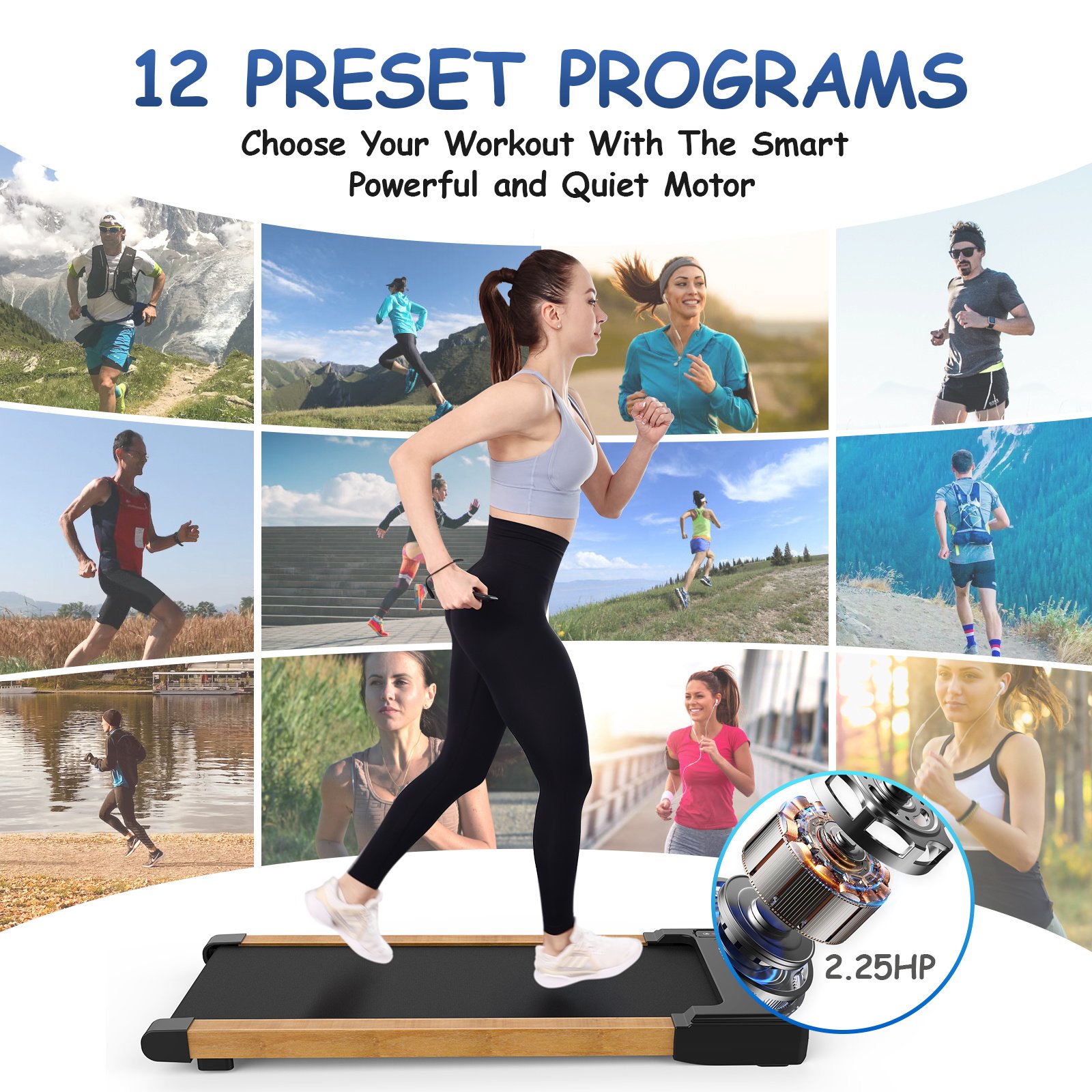 5.12 Preset Programs & Bluetooth Speaker:To increase the fun of working out at home, we have preset 12 programs for this under desk treadmill. We also designed a bluetooth speaker, you can enjoy your favorite music during the exercise.