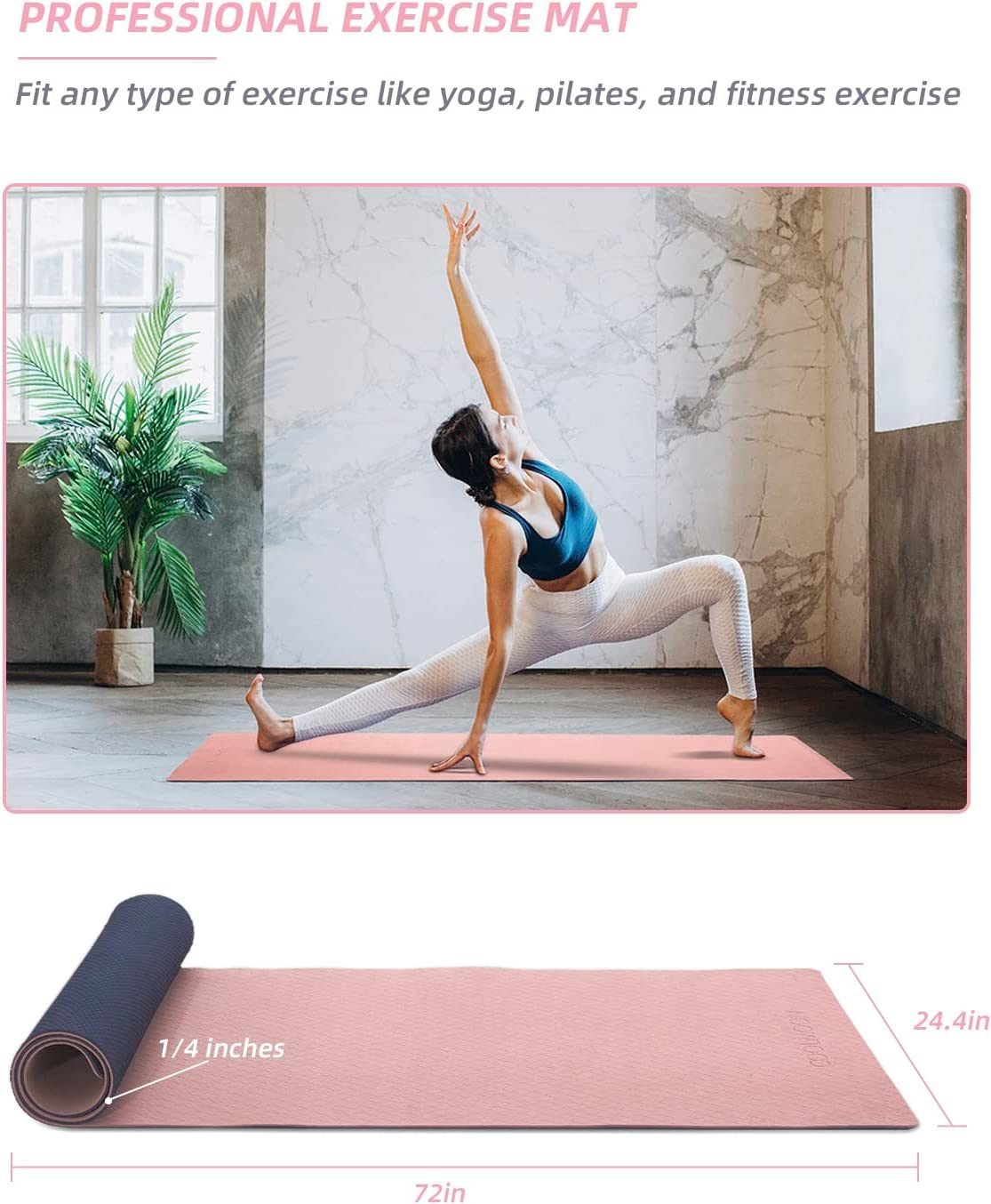 COOLMOON 1/4 Inch Extra Thick Yoga Mat Double-Sided Non Slip,Yoga Mat For Women and Men,Fitness Mats With Carrying Strap,Eco Friendly TPE Yoga Mat